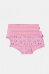 Set van twee shorty onderbroeken van stretch katoen. De 1 is effen roze, de ander is roze met een kattenprint. Verkrijgbaar in de maten 24m/2y-16y.