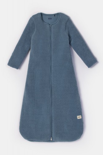 Blauwgrijze slaapzak van teddystof. De TOG-waarde van deze slaapzak voor baby's is 2,5. Deze slaapzak is verkrijgbaar in de maten 70cm, 90cm en 110cm.