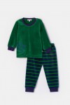 Donkergroene pyjama in velours met gestreepte broe