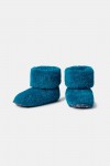 Groenblauwe pantoffels in teddystof. De pantoffels kunnen omgeplooid of lang gelaten worden. Verkrijgbaar in de maten 0-6m tot 43-46.