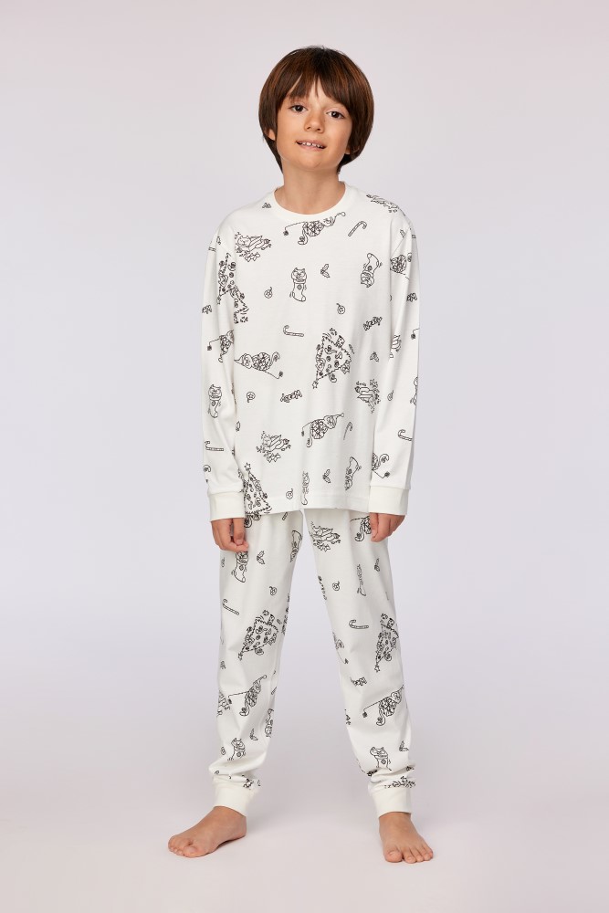 In te kleuren pyjama in soepel katoen. Deze comfortabele Woody pyjama met lange mouwen en lange broek zit heel aangenaam door de stretchkatoen, zowel de mouwen als de broek zijn afgewerkt met een brede boord. Bij de color me pyjama wordt een set uitwasbare textielstiften meegeleverd. Goed nieuws, na het wassen verdwijnen de kleuren weer en kan je opnieuw aan de slag. Ideaal als cadeautje of voor op je verlanglijstje. Verkrijgbaar van maat 2 jaar t.e.m. maat 16 jaar.