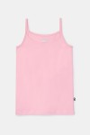 Lichtroze Woody singlet met spaghettibandjes voor meisjes in soepel en rekbaar katoen. Verkrijgbaar in maten 2Y-16Y.