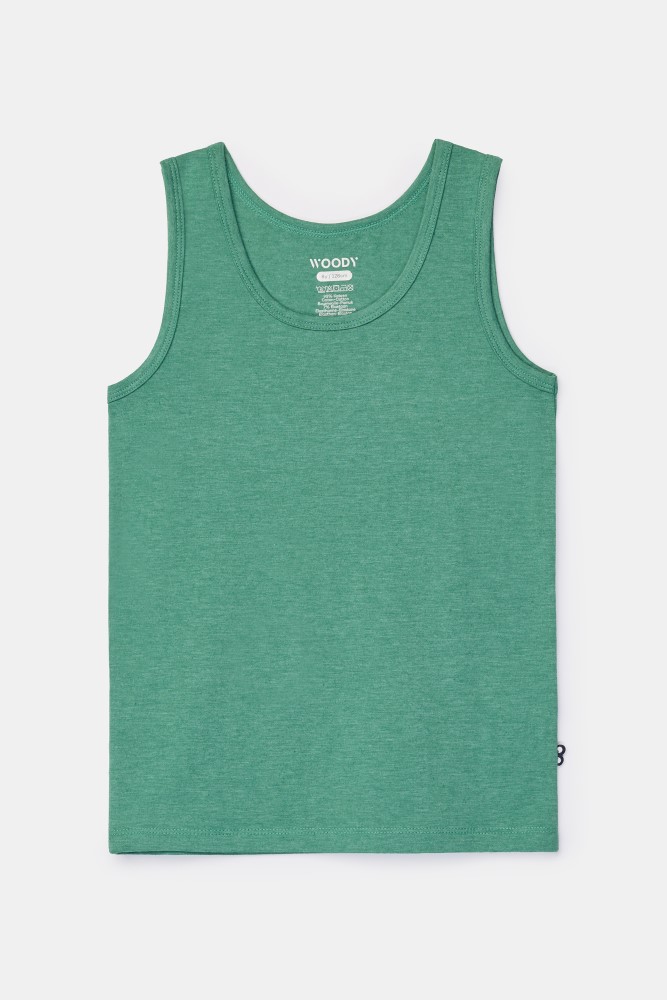 Donkergroene Woody singlet voor jongens in soepel en rekbaar katoen. Verkrijgbaar in maten 2Y-16Y.