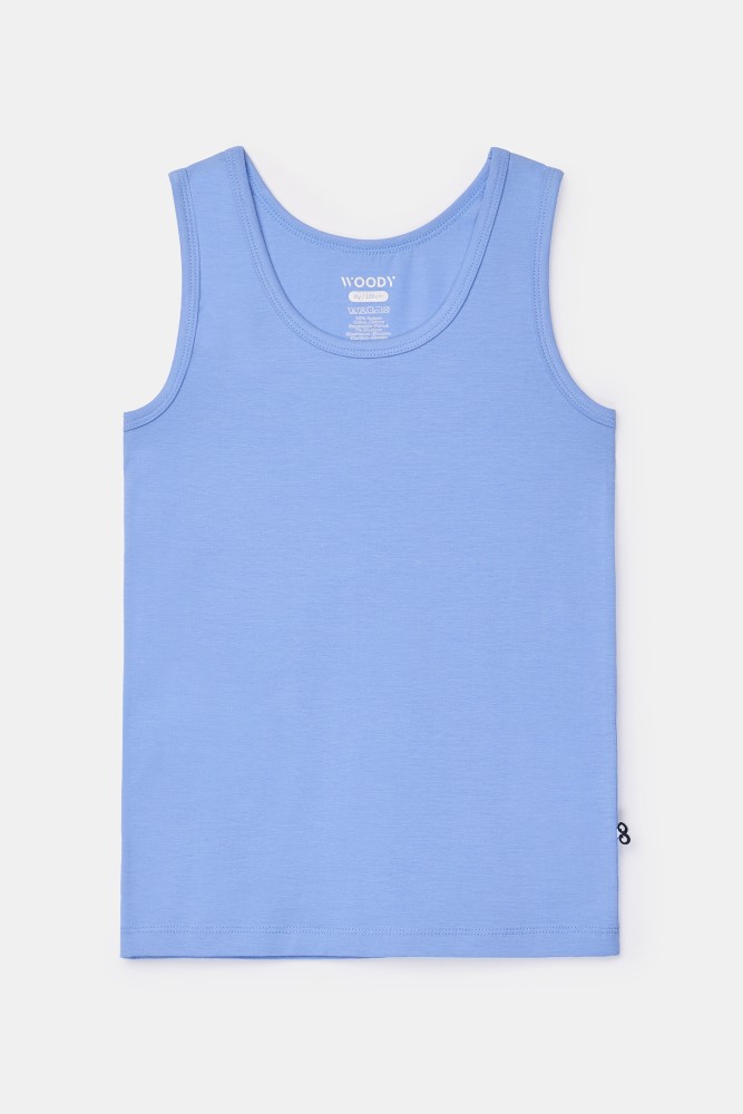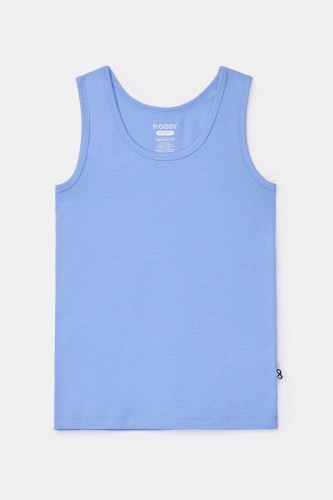 Blauwe Woody singlet voor jongens in soepel en rekbaar katoen. Verkrijgbaar in maten 2Y-16Y.