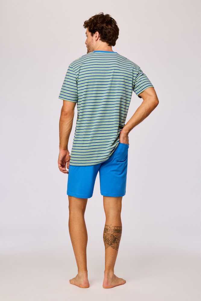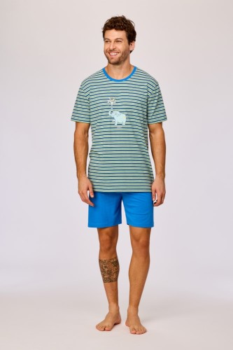 Jongens-Heren pyjama, groen-blauwe