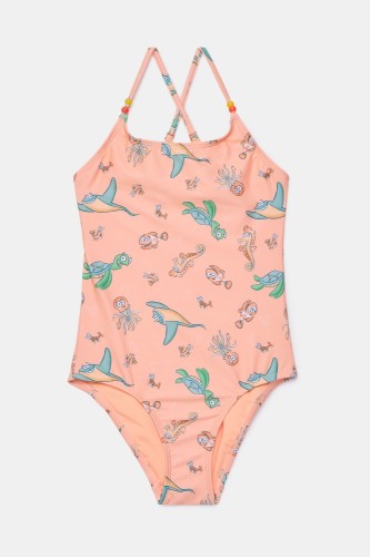 badpak, oranje zeedieren print