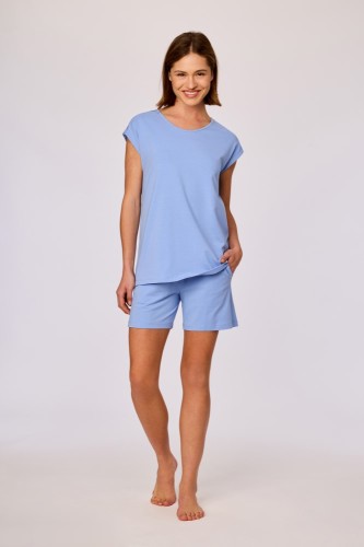 Deze blauwe pyjama van soepel katoen bestaat uit een blauwe T-shirt met korte mouwen en een ronde hals, afgewerkt met een kleine tijger op de borst voor de maten 2Y-10Y. Bij de maten 12Y-XXL is de T-shirt afgewerkt met een grote tekstprint op de rug. Debijpassende short is effen blauw en uitgevoerd met een elastische tailleband. Verkrijgbaar in de maten 2Y-XXL.