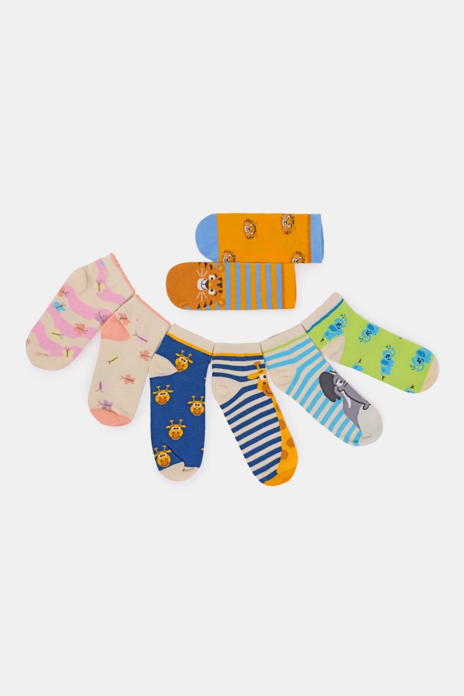Kleurrijke cadeauset met 6 paar korte sokken van fijn katoen. Van elk thema zijn er twee paar sokken. Verkrijgbaar in de maten 0-6m tot 43-46.