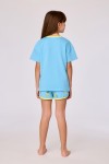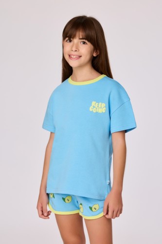 Blauwe T-shirt van soepele sweaterstof uit 100% katoen. De T-shirt heeft een opschrift 'Keep going' en een geel randje aan de hals. Verkrijgbaar in maten 2Y-12Y.