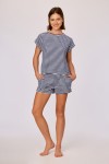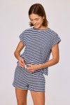 Tweedelige set van blauw-wit gestreepte Terry badstof. De strandshort kan aangespannen worden met een striklint. Verkrijgbaar in maten 2Y-XXL.