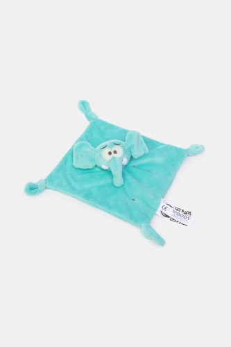 Blauw knuffeldoekje van velours in de vorm van een olifant. Het knuffeldoekje is +-23 cm groot.